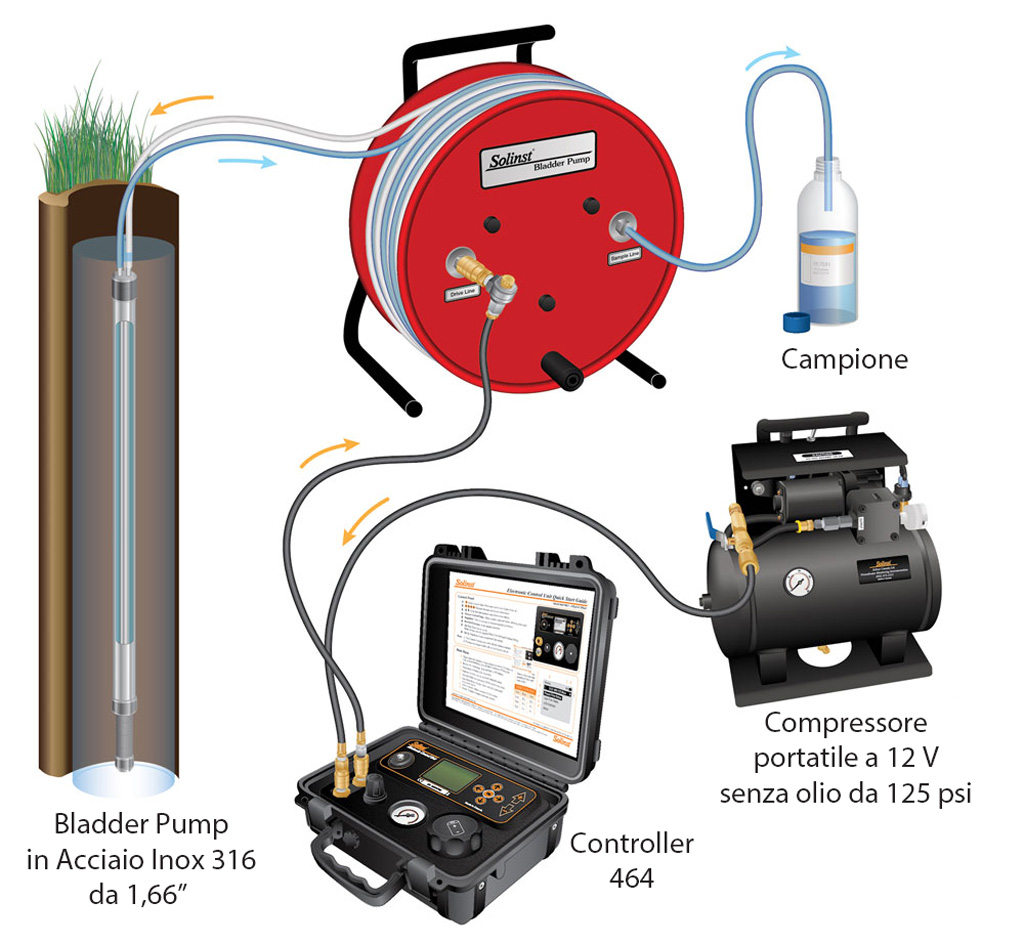 Schema di funzionamento della Bladder Pump Solinst mod. 407